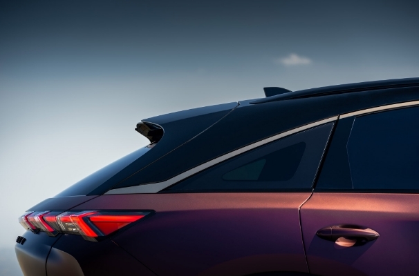 Gloss black roof rails and wheels contrast with its red and gold Twilight satin finish for a modern look. Dramatic bronze accents for the “spear” that outlines the the roof and grille add artistic flair.